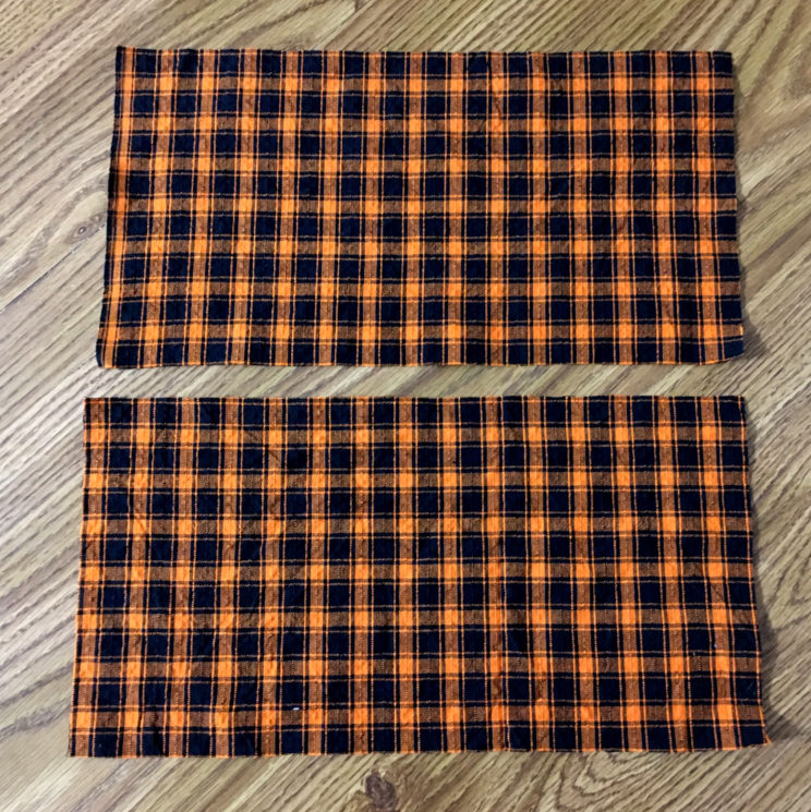 Cut 2 pieces of fabric to 13” x 7”