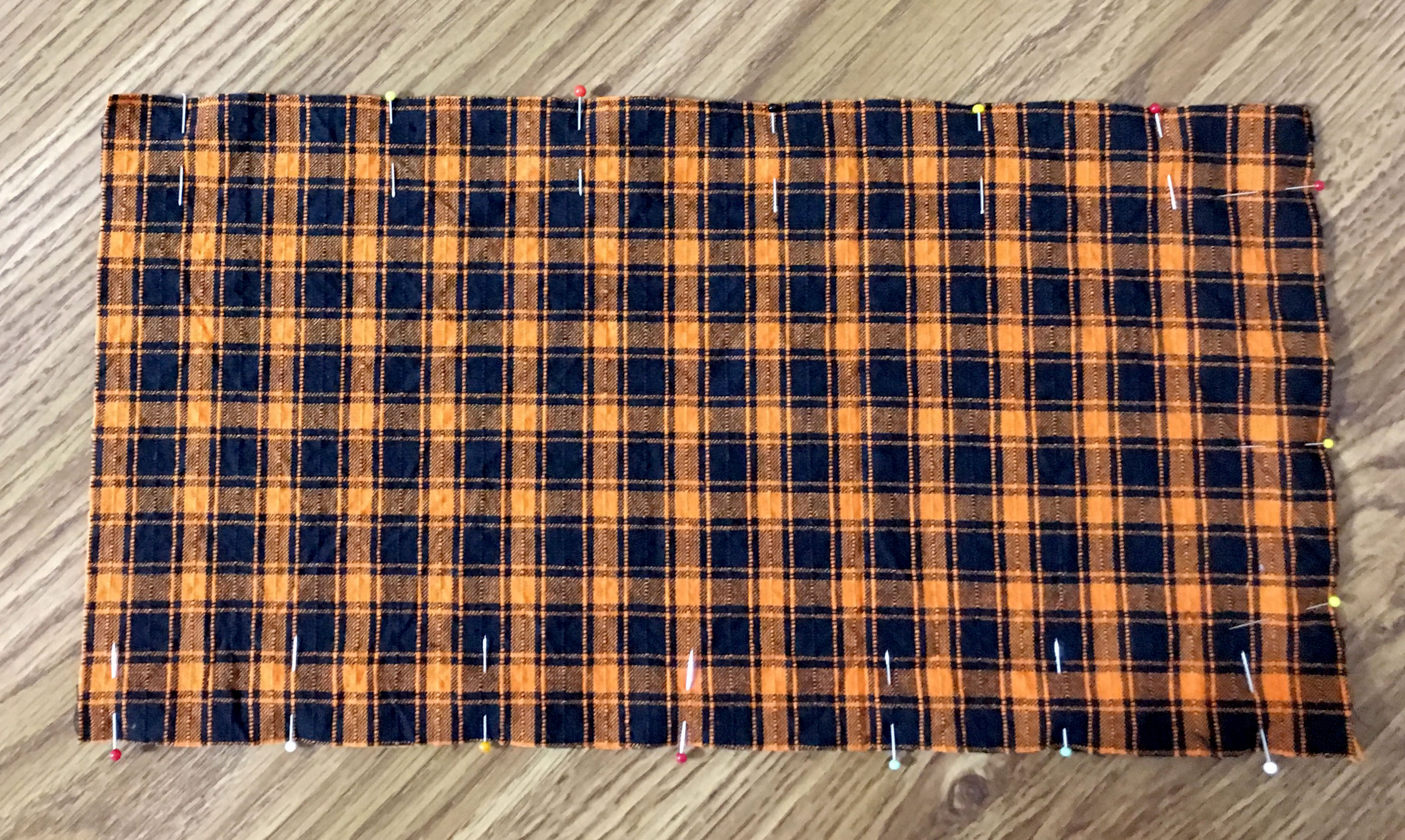 With right sides facing each other pin around three sides of your fabric, leaving one short side open which will be the top of your bag.