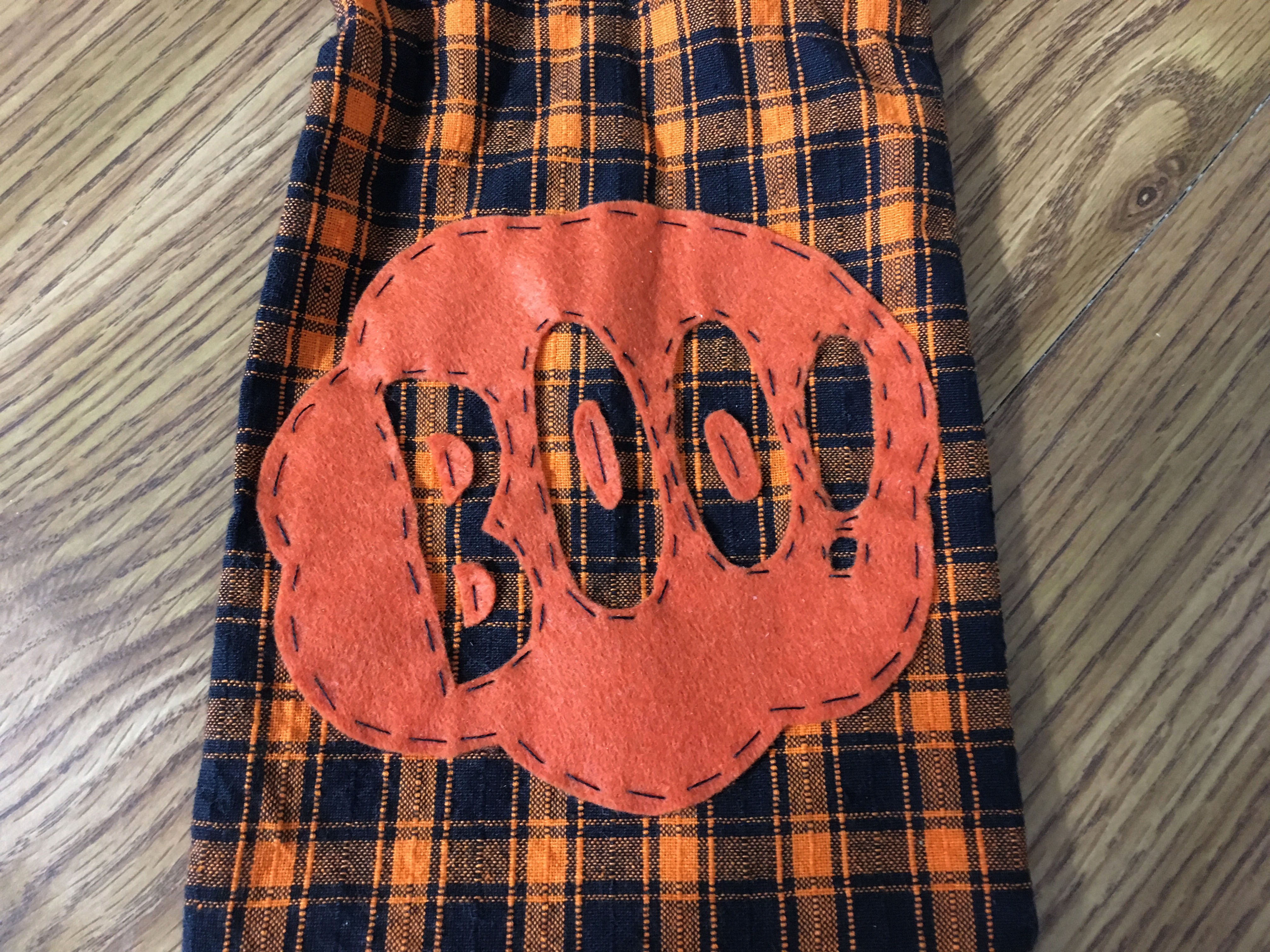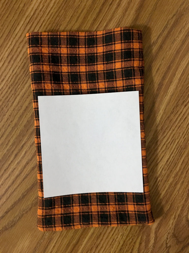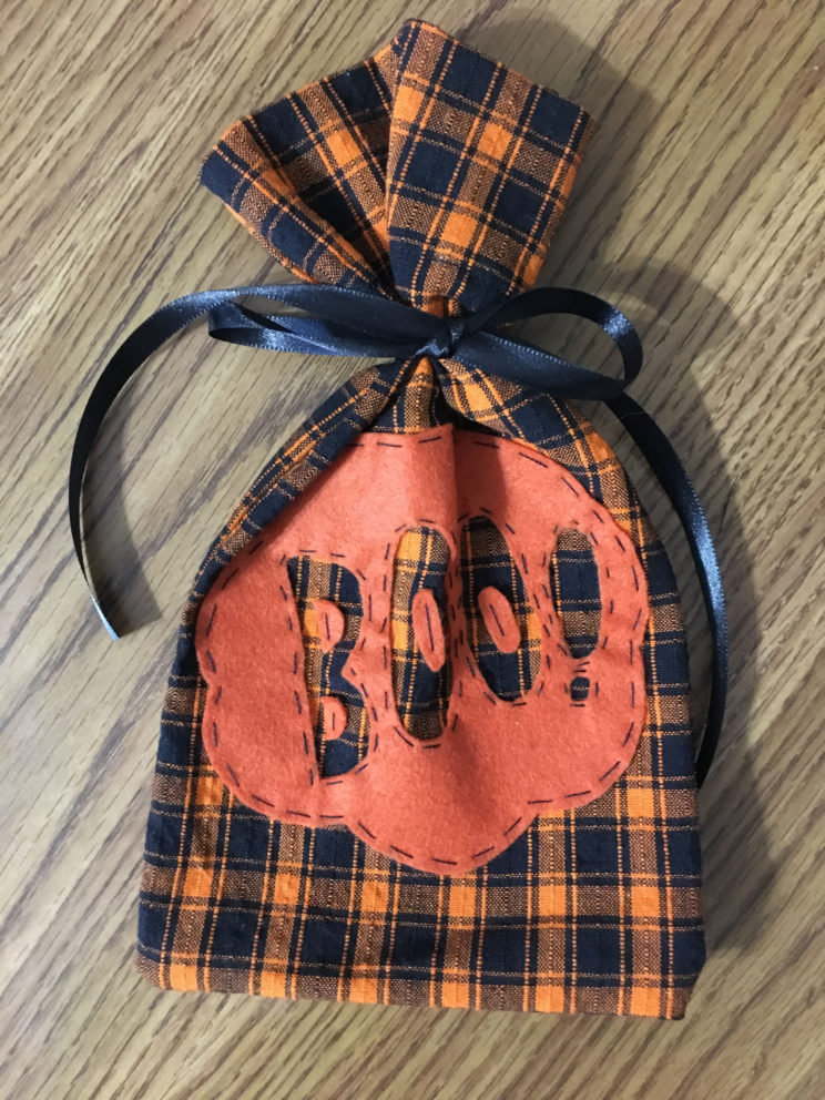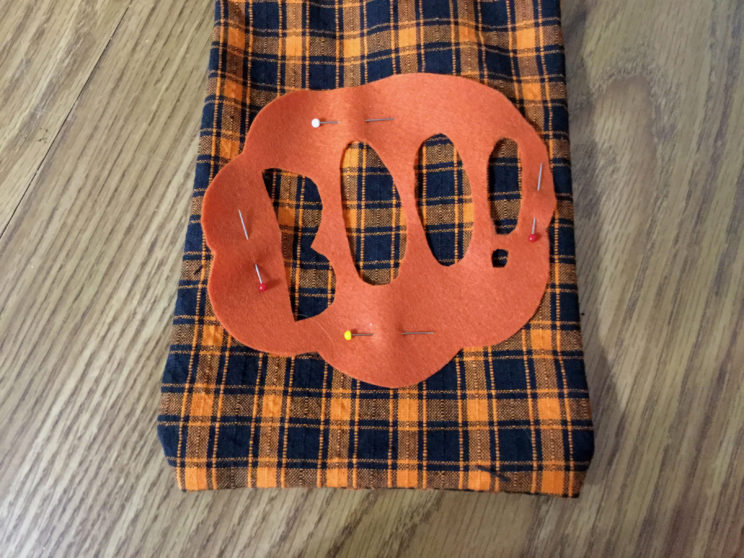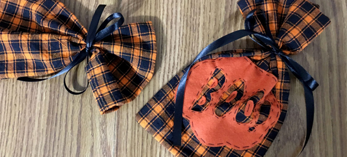 Making things yourself is so much fun and Halloween is a great time for getting really creative with DIYs. Between the costumes, treats and decorations, there’s so many things you could make! I’m really excited to share with you how I made these adorable Boo! Treat bags! The bags themselves are really quick and easy to sew and they close by tying a ribbon around the top. I found this fabric at Hobby Lobby and it has been so perfect for this project! It looks so good with the design on the front! In the first part of this post I’ll show you how I made the bag itself. You could use pre-made bags as well but making your own gives you a lot more possibilities. In the second part I’ll show you how to make and apply the Boo! design to the front.