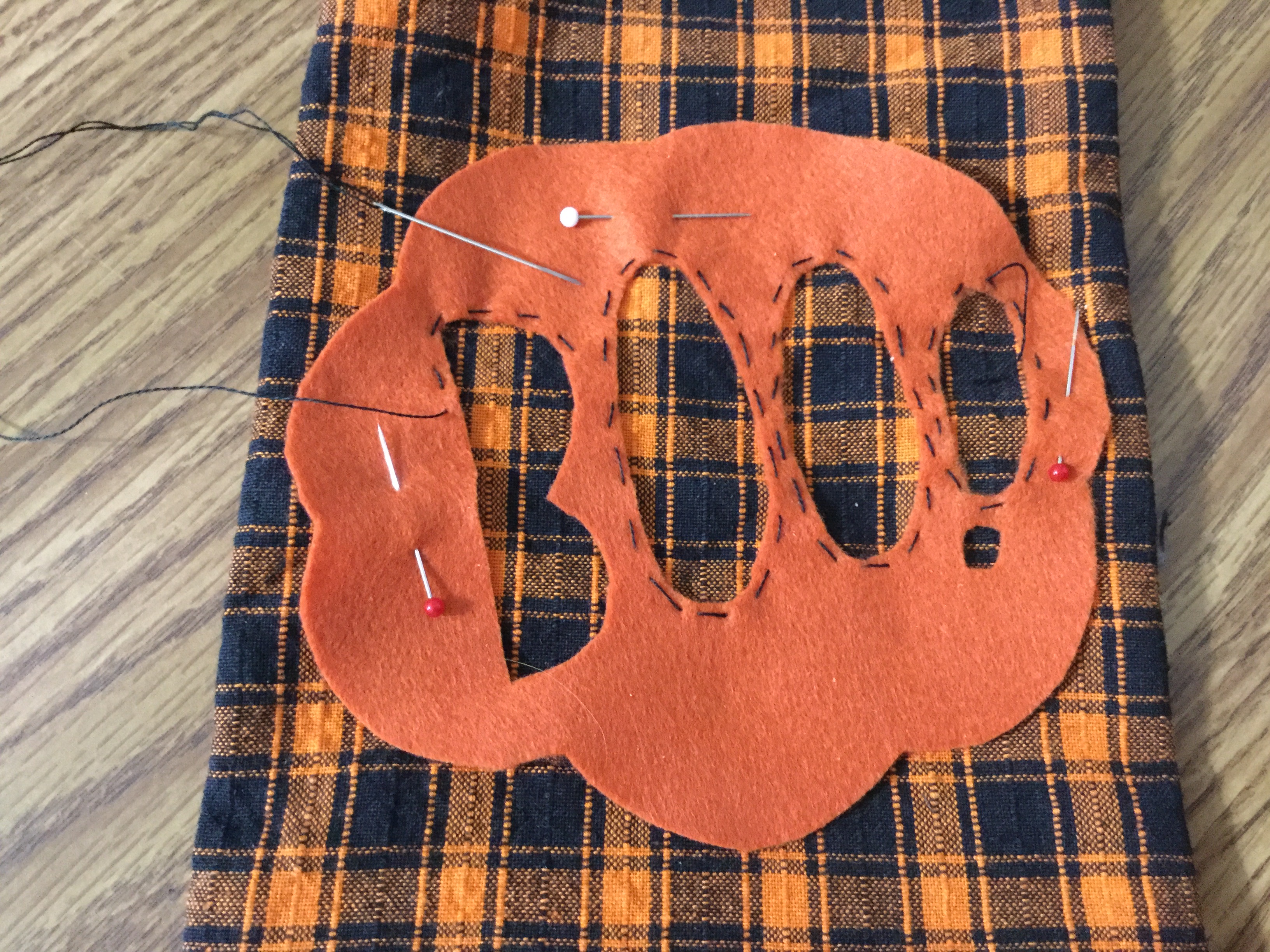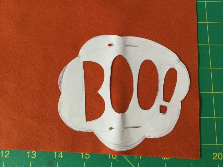 Pin your design to felt. Then, with a good pair of scissors, cut out your design. For the little pieces inside the letters, I did not use a pattern and instead free-handed it.